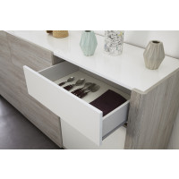 Bahut composé de 2 portes, 2 étagères et 1 tiroir.