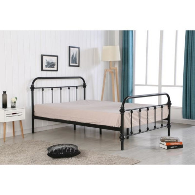 Lit 90x200 romeo métal noir avec sommier métal
