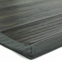 Larges lattes de bambou teintées en gris, bordées d'une ganse en coton teinte de couleur assortie.
